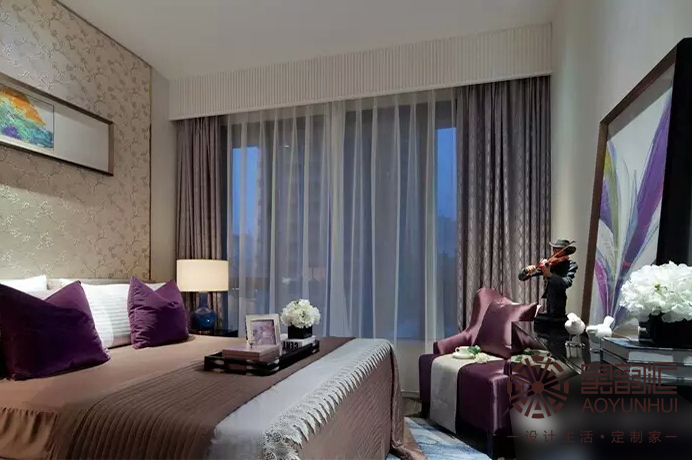 褐色的床單,加上紫色枕頭沙發(fā),