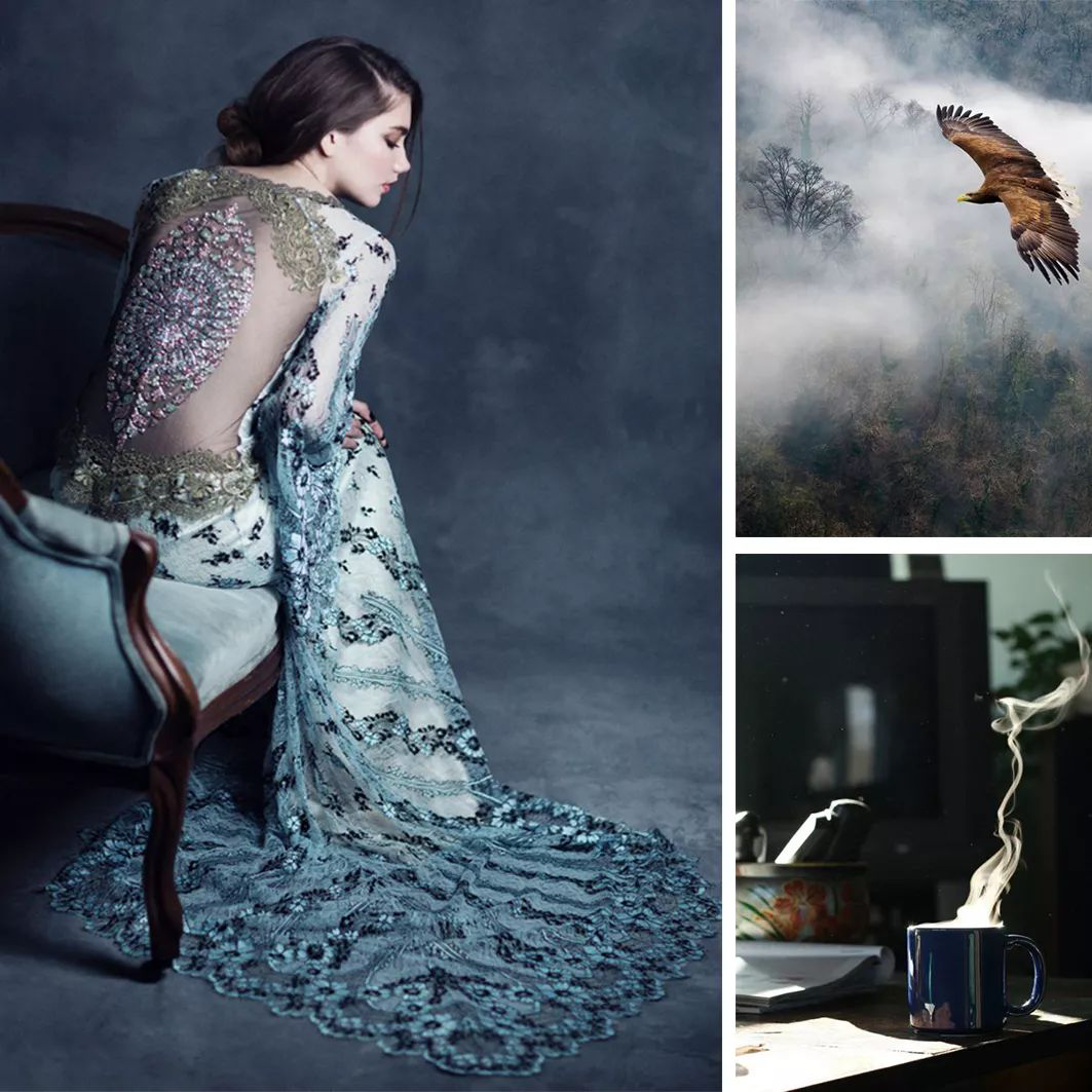 (灰藍色+孔雀藍 自然充盈)