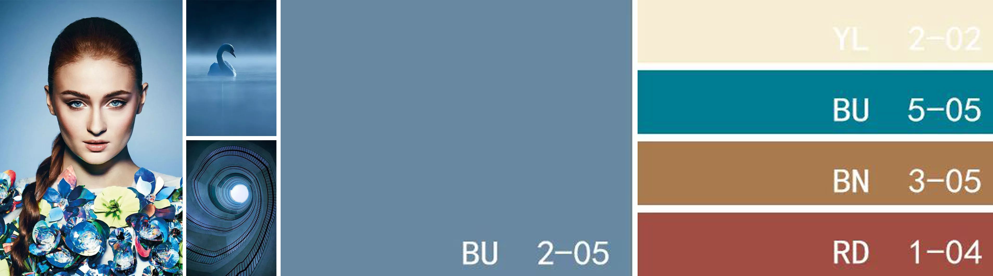 深牛仔藍、灰藍色、淺灰藍色,相同色相維持著空間的整體性與沉穩觀感。搭配優雅舒緩的銀白色地面和天花板,分明的層次彰顯著時尚的質感。
