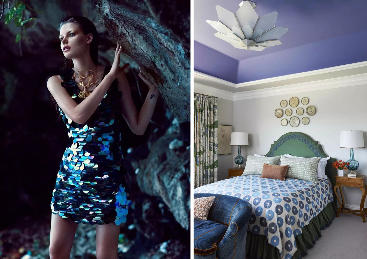 無論是餐桌上裝飾,還是重點陳列擺件,白藍交匯,海浪游魚,皆會讓人產生自然的聯想。層層疊疊的藍色糅合聚散,曼妙而多姿,時尚的顏色在這一刻里擁有了無窮的生命力。