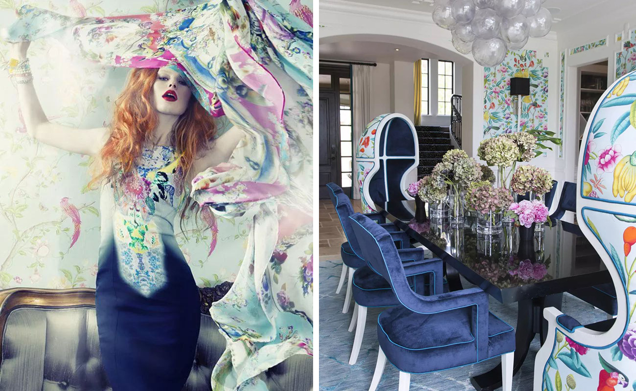 絢麗的柔和藍印花壁紙讓同色系搭配更加嬌艷動人,帶來愉悅爽朗的好心情!