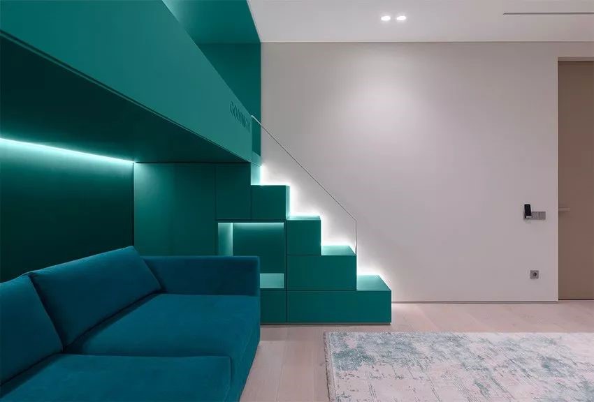 ——并選配同色系的沙發(fā)椅,創(chuàng)造空間中的視覺焦點,并打上間接照明點亮情境氛圍。