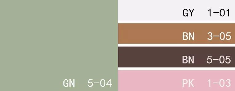 —色卡:灰綠色、亮白色、杏仁色、栗色、珊瑚粉—