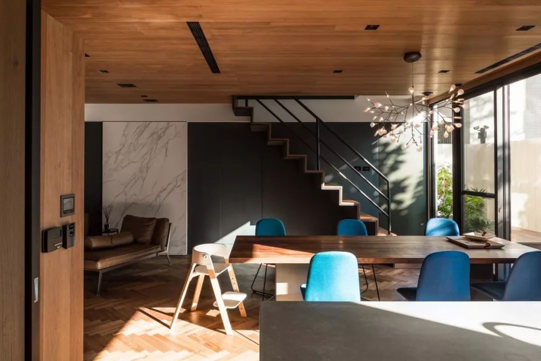 ——梁志天先生,在墻壁和頂部,都選擇了大量的木材來裝飾整個家,既高級又有品味。