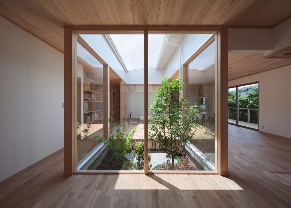 利用前后的高低差,通過人工方式處理高低差和布景,使原本位于地下室的區域擁有面向花園庭院的開放式空間。