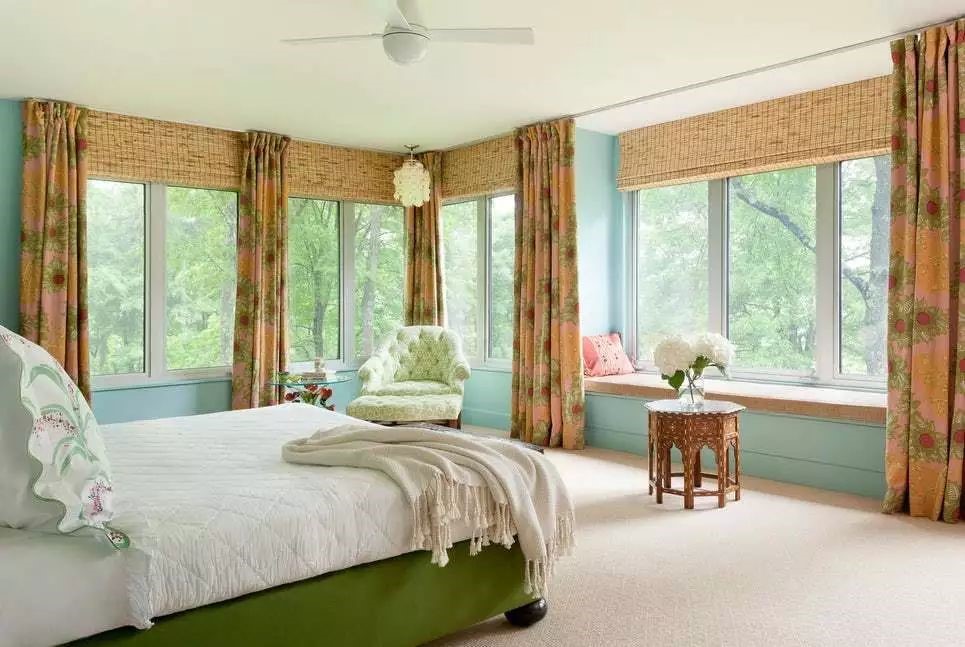 蒂芙尼藍捕捉浪漫的情愫,墻壁四周被明亮光線環繞如水晶一般,散發奪目的光彩。奶油糖果色精心點綴出生氣窗簾應用也不呆板,綠葉花卉與竹篾花卉構成了充滿自然韻律的美好畫卷。地毯的顏色來自食物,帶來一絲親切與溫馨。