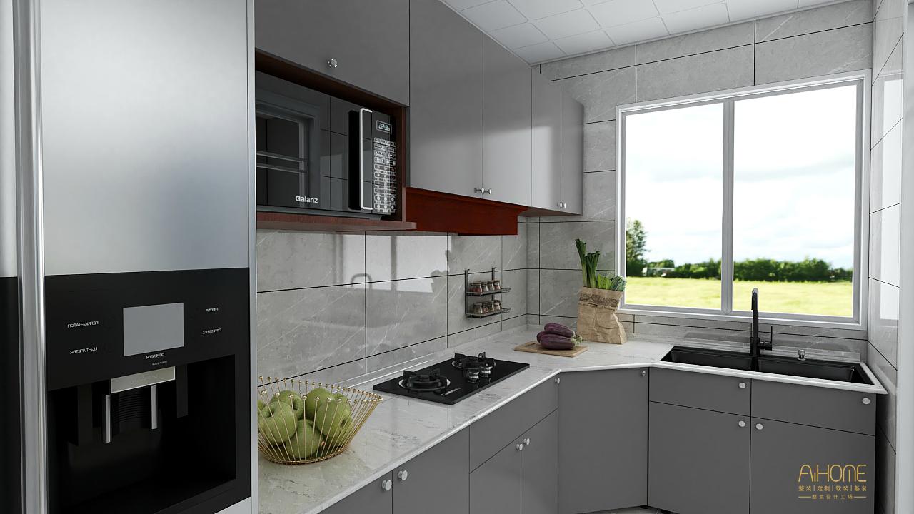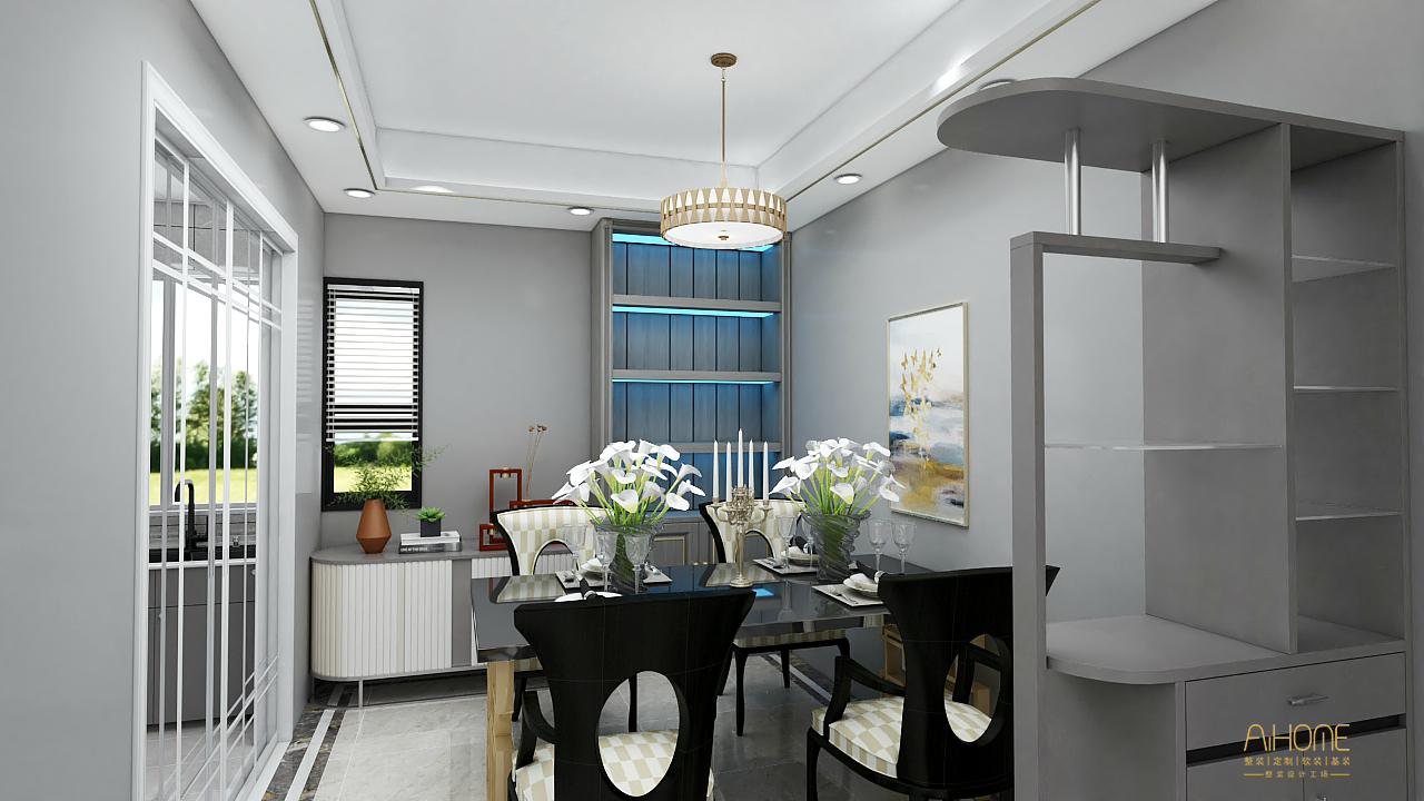 ——餐廳,以綠植小品打破了空間的色調,點綴其間,有一種美好生活的向往便表達。