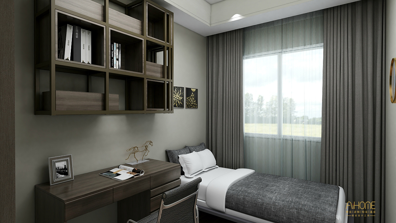 ——臥室,保持了整體素雅低調的基調,運用原木家具,提高空間的視覺舒適感。
