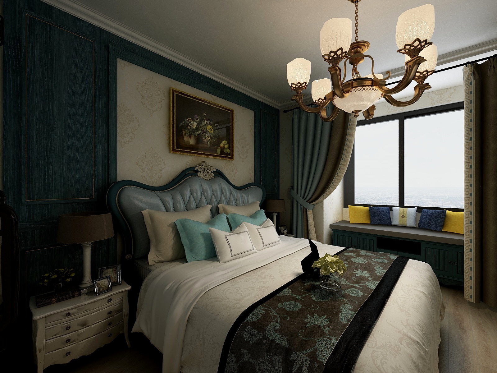 本案為色板房間應用,藍色的開放木蠟色,給人一種古樸的華麗感,仿佛穿越回到過去。