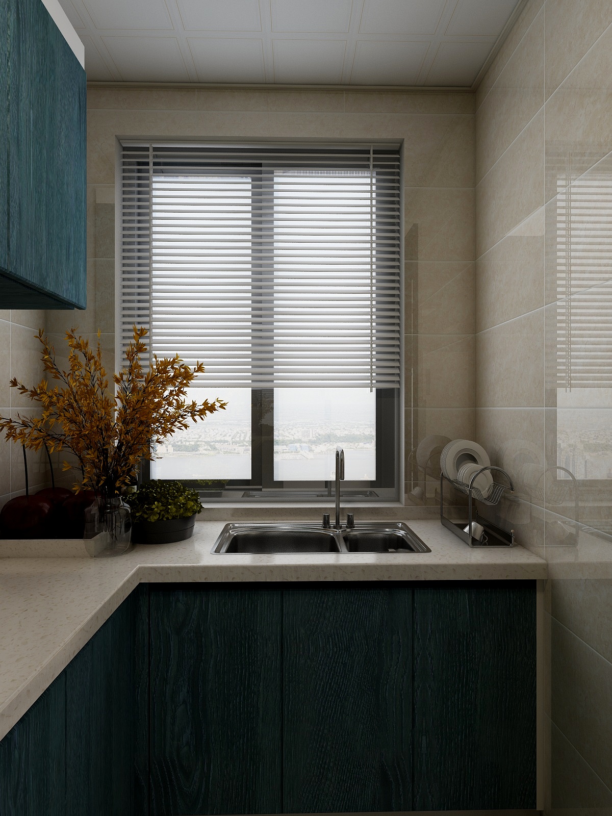 廚房雖為煙火之地,但也可拿綠植盆景裝點一番。