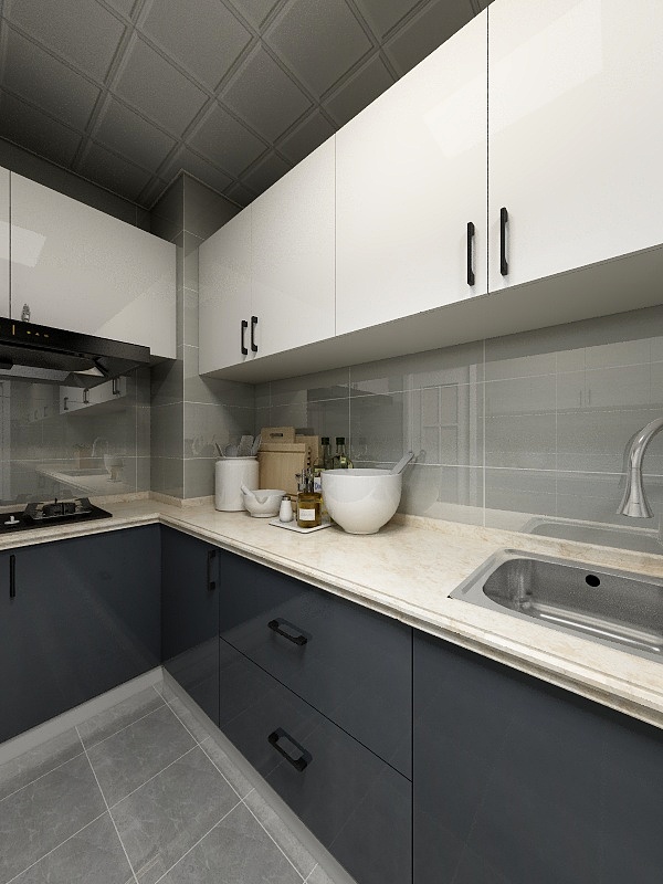廚房為L形設計,有效的利用廚房空間布局而設計。