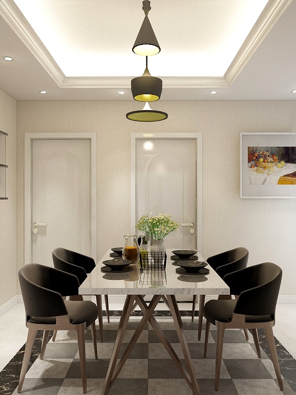 ——餐廳在米黃色的基調中,以深灰色家具,餐具,以及些明亮的色彩搭配,顯得時尚又溫馨。