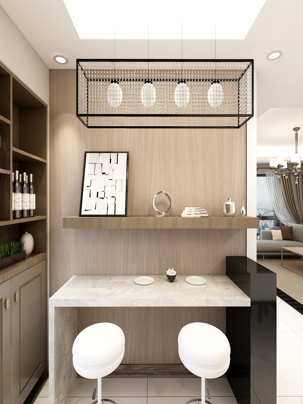 ——入戶吧臺,在窄小的空間也有一種高雅的情懷,坐在吧臺搭配紅酒,是一種人生的愜意與生活的品味。