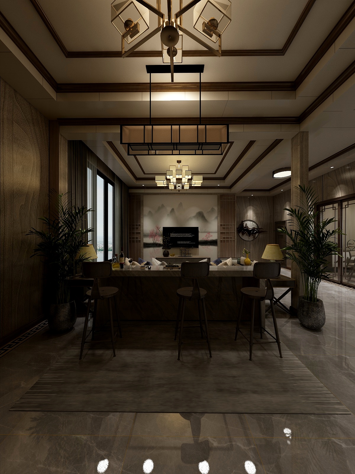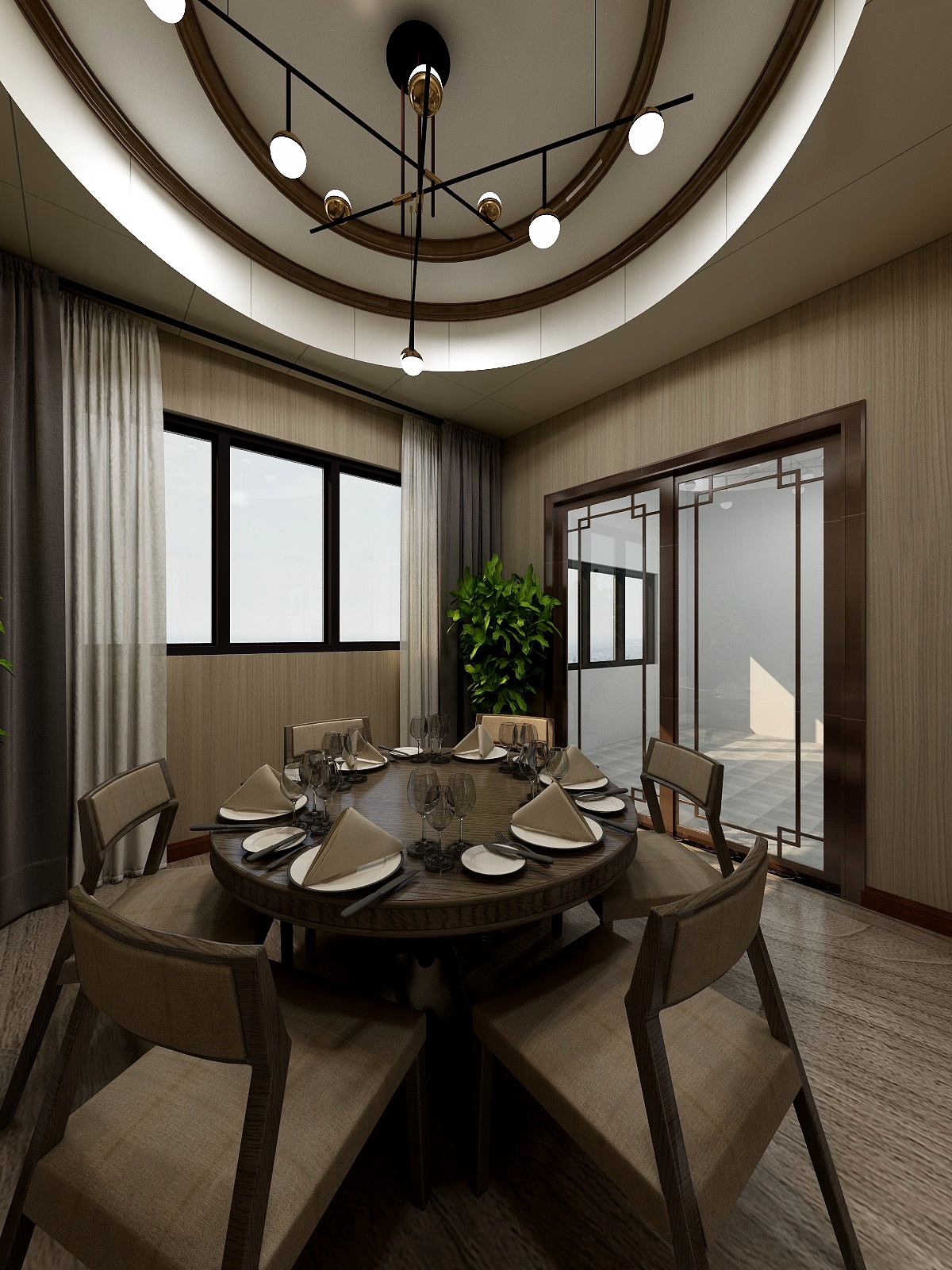——中國人在裝修和飾品都比較講風水,餐廳,采用了天圓地方的設計理念,體現出中華韻味。