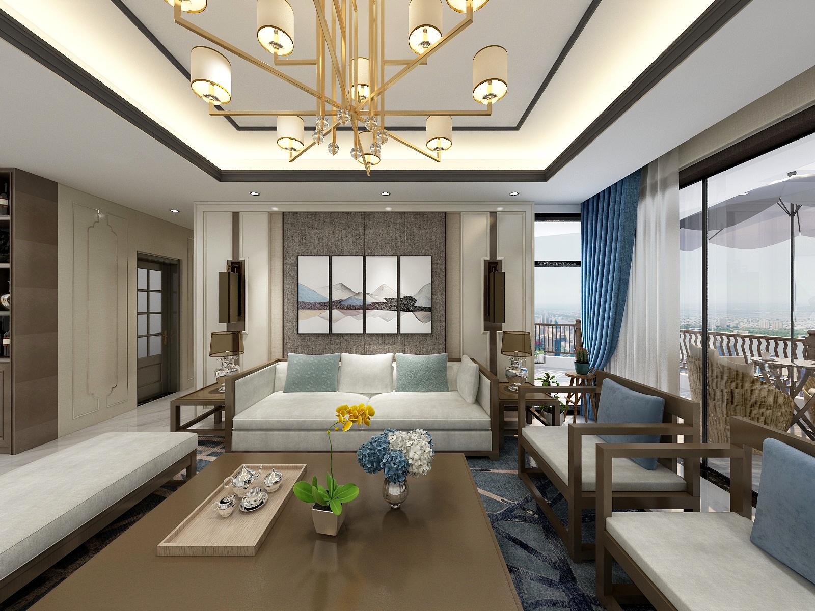 ——"冬天來了,春天還會遠嗎?"溫暖的陽光照射在新中式的房子中,顯得十分溫暖。客廳低調的中性色木調裝飾家居,簡潔明快,加以陽光的映襯,明快而溫馨。