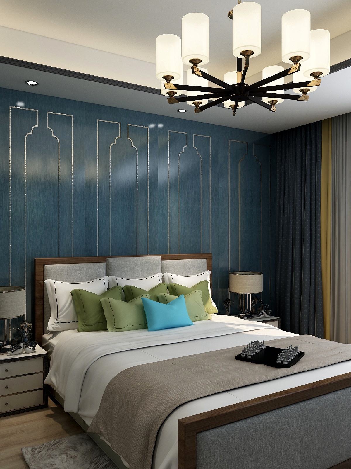 ——臥室采用清新藍色系,搭配黃色點綴,仿佛呈現出一副冬日里的霧氣感中的一米暖陽,暖在心里。