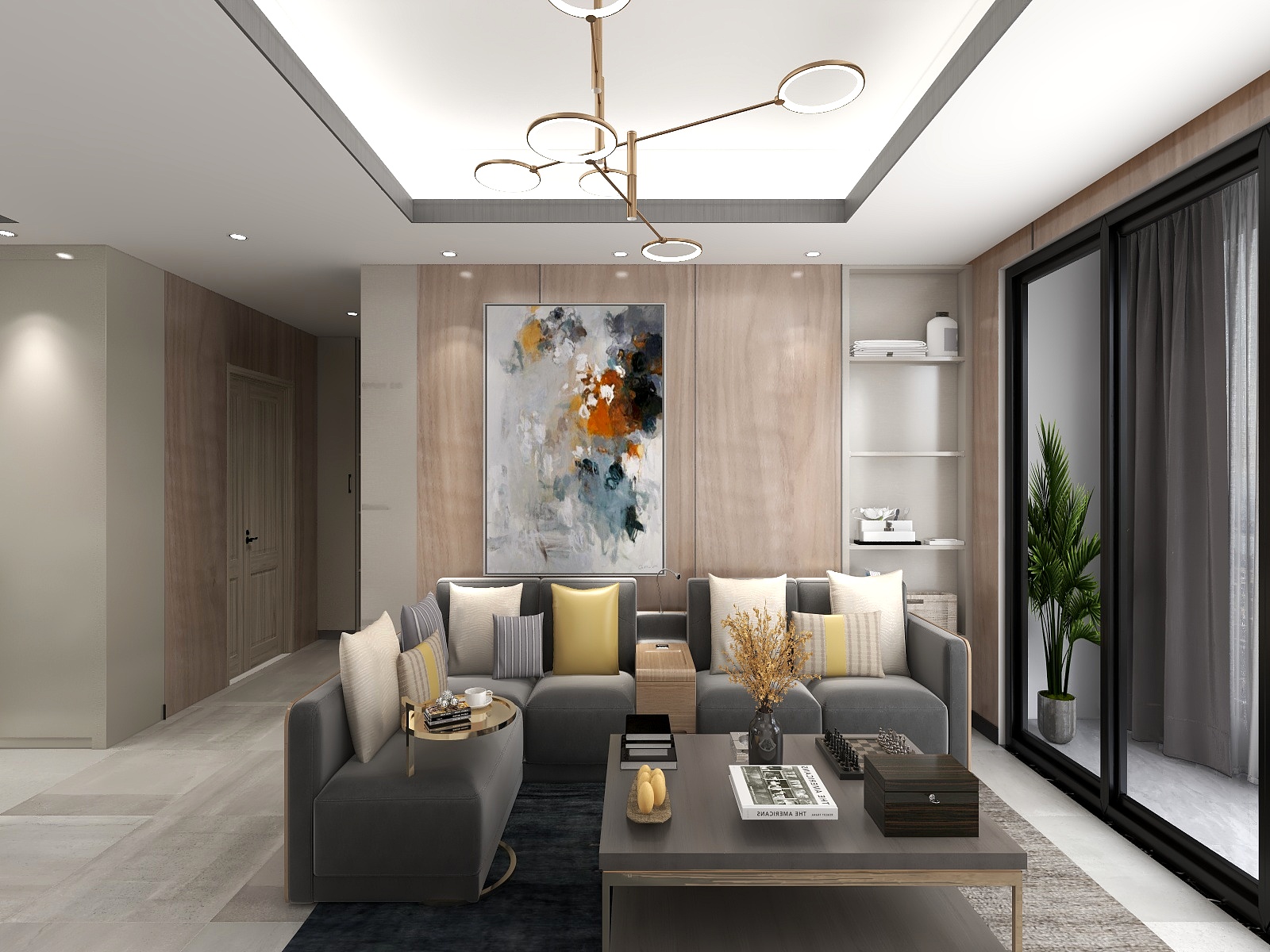 ——何為簡約?并非說簡約等于簡單,而是刪繁就簡,摒棄復雜、多余的裝飾,色彩輕快,明了。一般以清新淡雅的色彩為主,深受現代年輕人的青睞。客廳,簡潔明快的大線條分割空間,金屬圓形吊燈,時尚又有韻味。