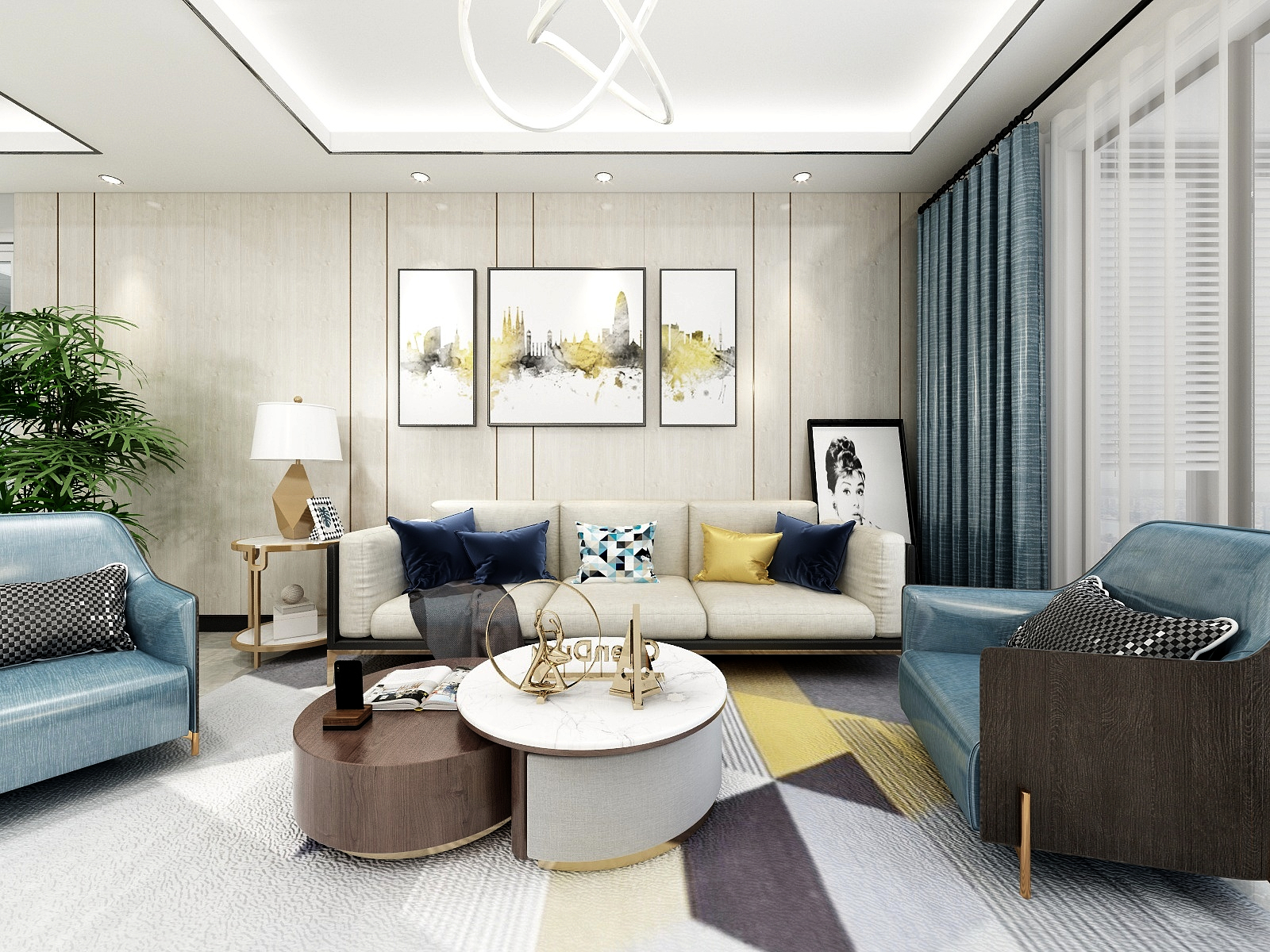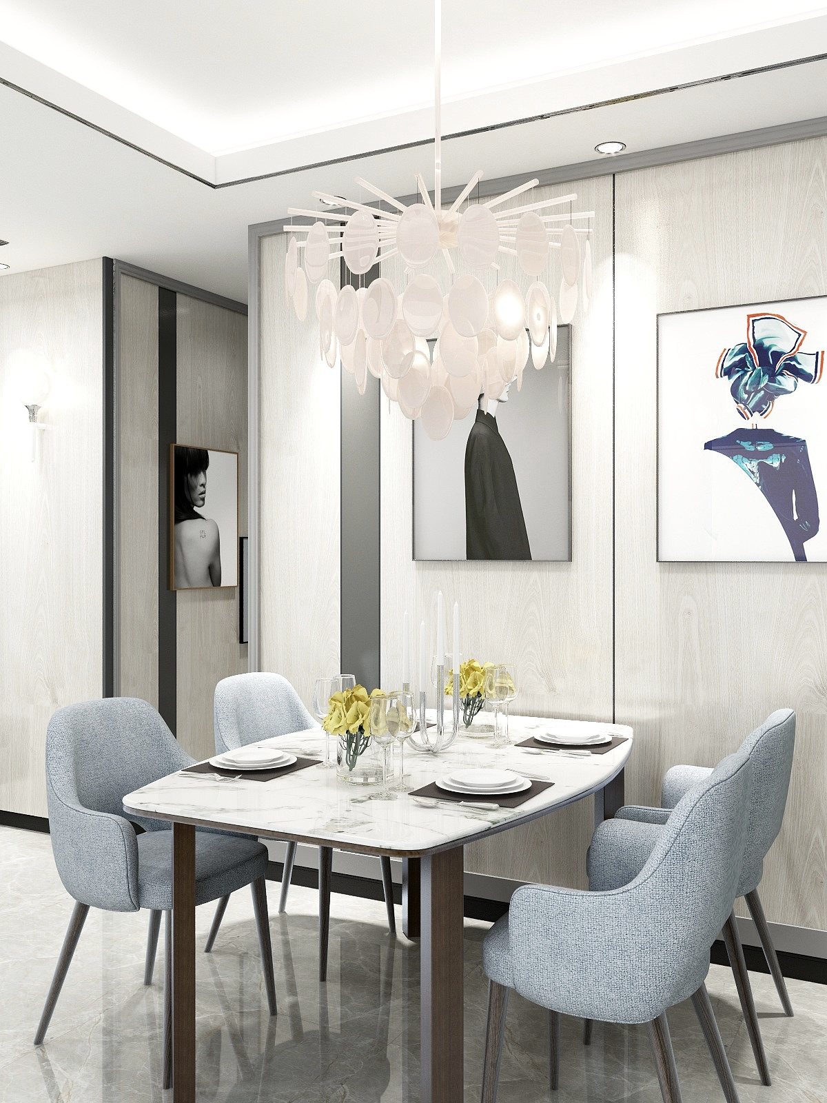 ——客餐廳為開放式,空間中都使用了寂靜幽蘭的藍色色彩,相互呼應(yīng)。