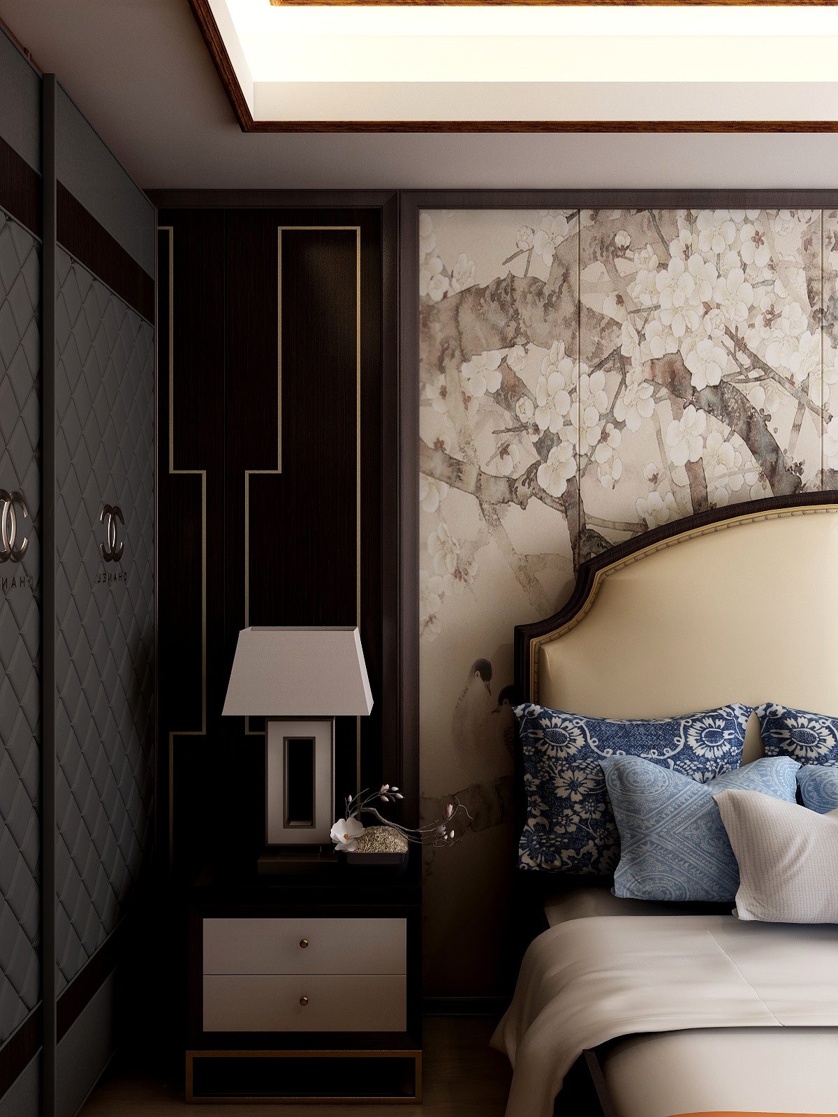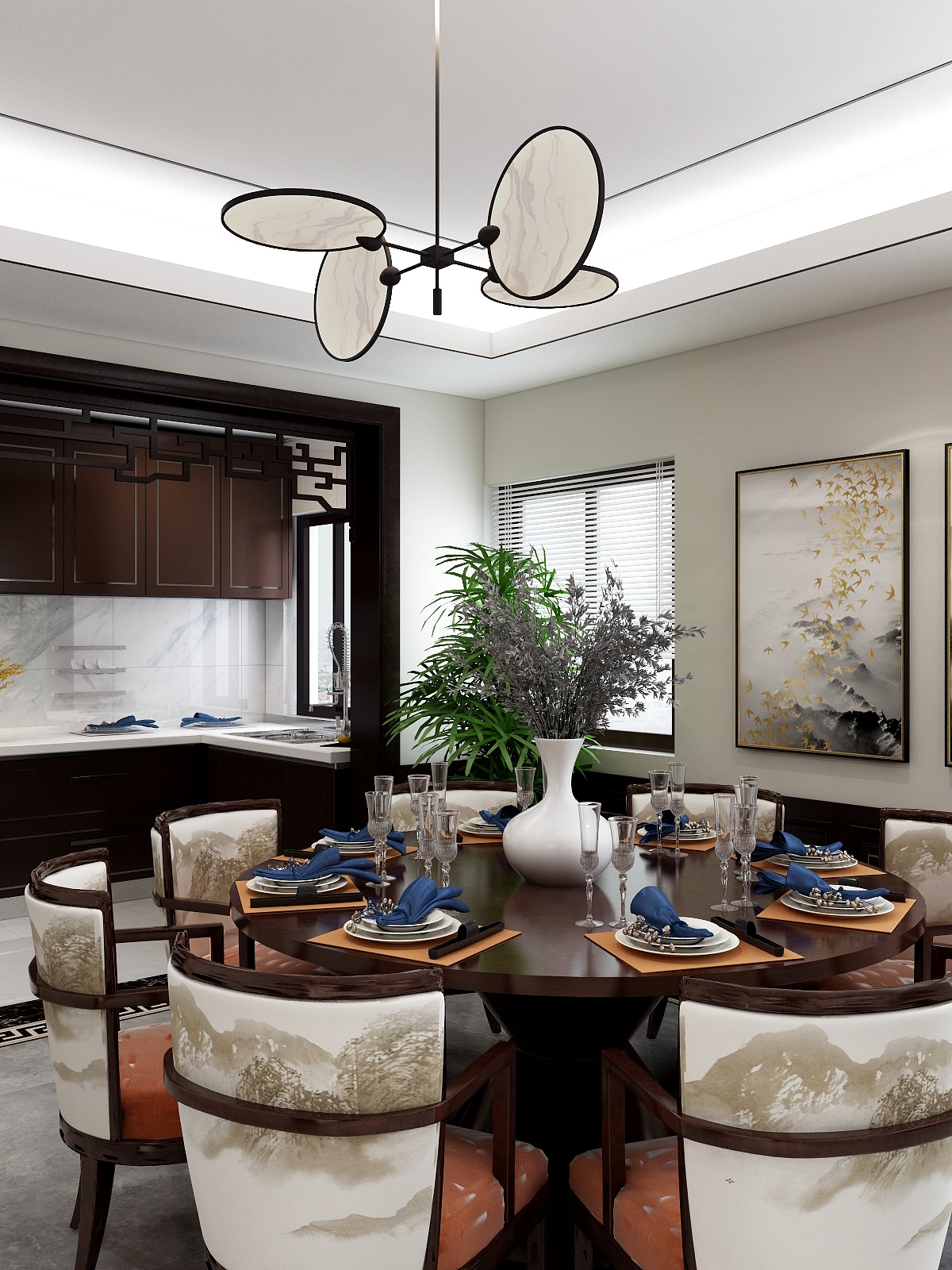 ——本案為新中式裝修效果圖,新中式是時代發展的產物,但這種風格也保留著中式的些許特點,而這些無非是文化之根的表現。