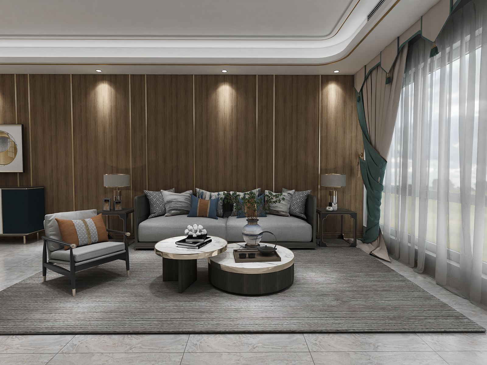——本案中的為中式風格,深色質樸的棕色護墻板以及線條流暢的裝飾線條,古樸中流露著時尚。