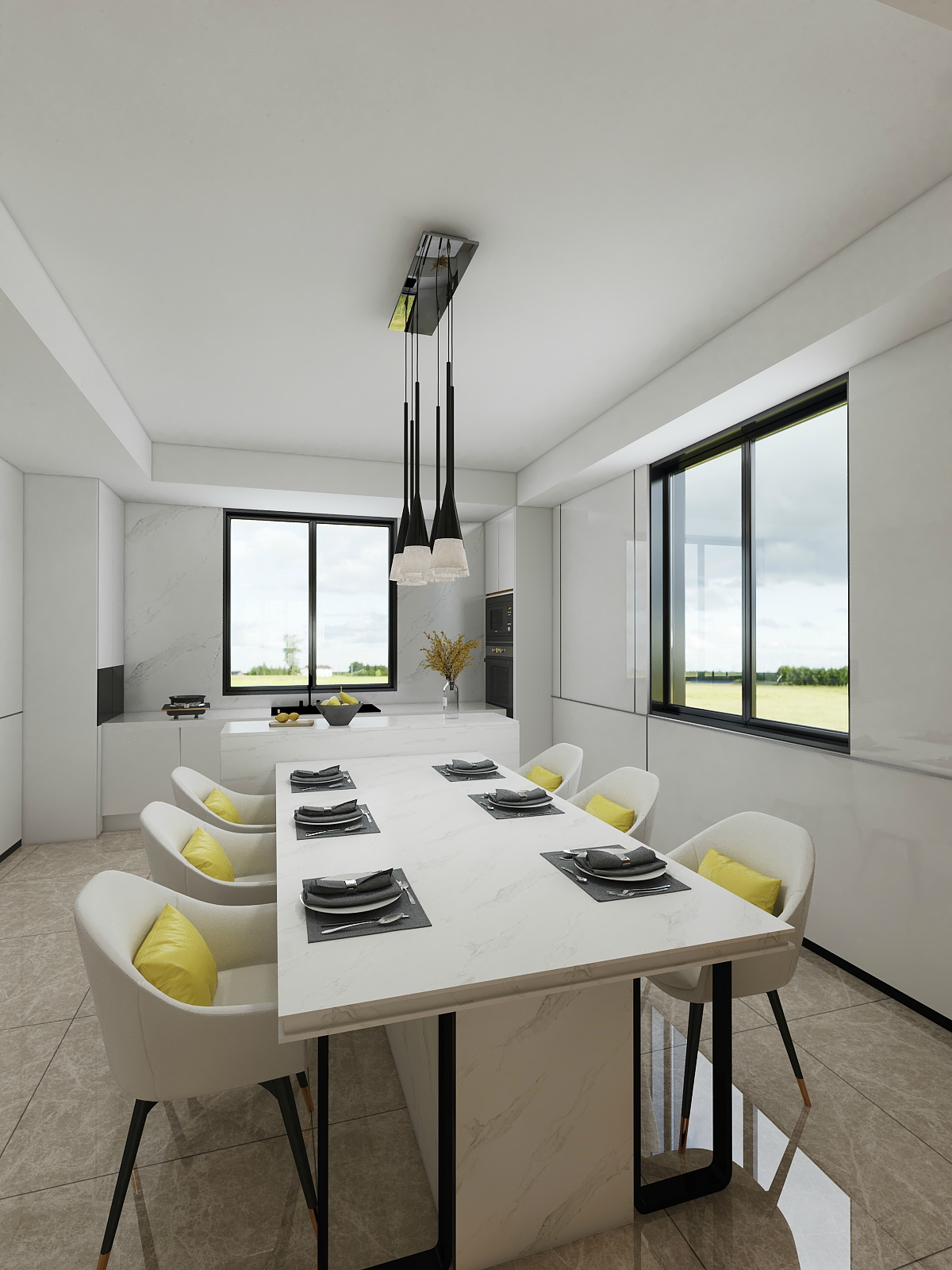 ——開放式客餐廳對于狹長小戶型的空間而言,可以最大限度提供使用空間,在一定程度上也可以增加親人之間的互動(dòng)性,現(xiàn)代風(fēng)格的特點(diǎn),簡約,線條感流暢,以個(gè)性化,時(shí)尚化簡單化打造舒適的居住空間。