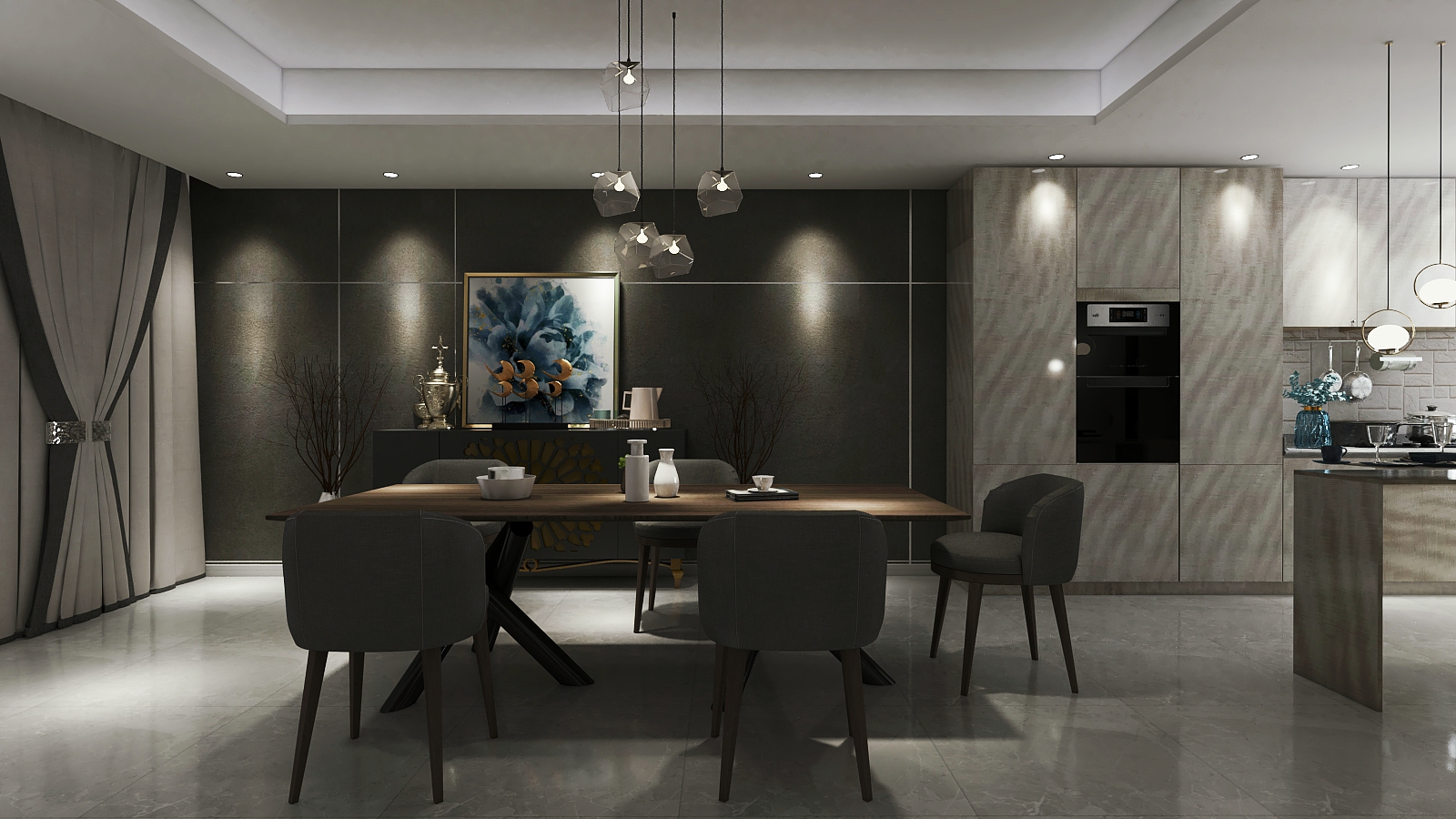 任它海闊天空,心中只有那一寸方土的歸屬。整體空間以簡潔明快,以高級黑白灰打造現代時尚都市風的情調。