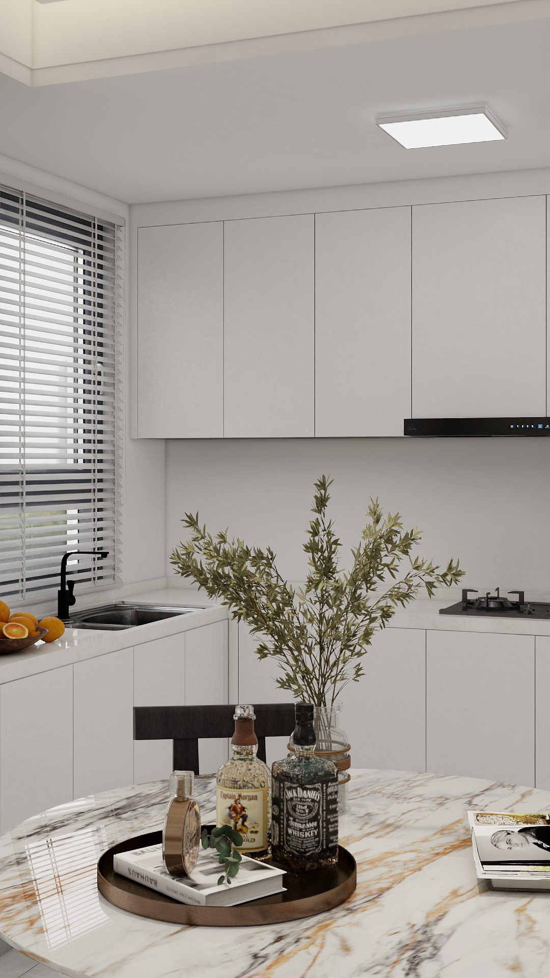 白色的廚房,重要的是要確保空間的整潔性和明亮感。選擇白色瓷磚或者白色光滑墻面材料可以反射光線,增加空間的寬敞感。